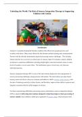 This paper explores the therapeutic application of Sensory Integration Therapy (SIT) in supporting children with Autism Spectrum Disorder (ASD) who experience atypical sensory processing challenges. It begins by defining ASD as a neurodevelopmental condition affecting socialization, communication, and learning, often characterized by intense interest in or aversion to specific sensory input (e.g., bright lights, noise, certain textures). The document then defines SIT as a play-based, sensory-mot...