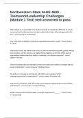 Northwestern State ALHE 4600 - Teamwork/Leadership Challenges (Module 1 Test) well answered to pass