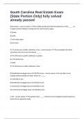 South Carolina Real Estate Exam (State Portion Only) fully solved already passed