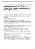 - Chapter 02- Clinical Safety- The Core of Leading, Managing, and Following Yoder-Wise- Leading .Actual exam questions with detailed solution • Exam (elaborations)