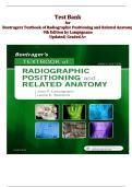 his document is a comprehensive test bank for Bontrager’s Textbook of Radiographic Positioning and Related Anatomy by Lampignano, 10th Edition (2024). It includes multiple-choice questions, matching exercises, and true/false questions covering all chapters, such as terminology, positioning principles, chest imaging, and related anatomy. Each question is accompanied by correct answers and references, making it highly useful for exam preparation and review. This resource is aligned with the late...