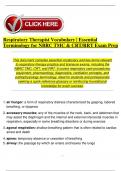 This vocabulary guide compiles essential terminology for respiratory therapy students preparing for the NBRC TMC, CRT, and RRT exams. It includes clear definitions of key clinical terms across topics such as mechanical ventilation, diagnostics, pharmacology, pulmonary function testing, and patient assessment. Perfect for mastering the language of respiratory care and reinforcing exam-specific vocabulary for 2024–2025 certification prep.