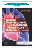 The test bank focuses on advanced health assessment, clin... i x Book Exam (elaborations) • 175 pages • by SharpStudy • uploaded 2026 Quick View i x ADVANCED ASSESSMENT • ADVANCED ASSESSMENT Advanced Assessment • Mary Jo Goolsby, Laurie Grubbs• ISBN 9781719648318 TEST BANK: CLINICAL MANIFESTATIONS AND ASSESSMENT OF RESPIRATORY DISEASE, 9TH EDITION BY DES JARDINS (0) $21.99 0x sold This complete test bank for Clinical Manifestations and Assessment of Respiratory Disease, 8th Edition by Terry Des Jardins provides a comprehensive collection of exam-style multiple-choice and critical-thinking questions with verified answers. It covers essential respiratory care topics including pulmonary anatomy and physiology, patient assessment, diagnostic testing, arterial blood gases, oxygen therapy, mechanical ventilation, and management of acute and chronic respiratory disorders.
