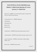 This final exam pack for NUR 170 includes verified questions and accurate answers covering core nursing fundamentals. Topics include patient care, safety, communication, and basic clinical skills. Designed for comprehensive final exam preparation. Clear, exam-focused, and reliable for achieving strong results.