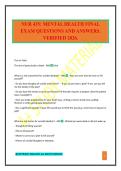 VERIFIED 2026. i x Exam (elaborations) • 4 pages • by sirjoel • uploaded 2026 Quick View i x NUR2513 • NUR2513 NUR 435: MENTAL HEALTH FINAL EXAM QUESTIONS AND ANSWERS. VERIFIED 2026. (0) $13.99 0x sold NUR 435: MENTAL HEALTH FINAL