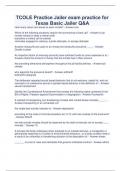 TCOLE Basic Jailer Course 100% Correct Review Exam TCOLE [Texas Commission on Law Enforcement] - ANS-is a state regulatory agency for local law enforcement and county corrections systems within the state if Texas. TCJS [Texas Commission on Jail Standards] - ANS-is the regulatory agency for all county jails and privately operated municipal jails in the state. The Occupations Code - ANS-is the statutory authority for the Commission to establish rules that law enforcement agencies and ja...
