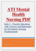 - ATI Mental Health Nursing Quiz 1 – Practice Questions with Answers and Rationales for Psychiatric Nursing Fundamentals • Exam (elaborations)