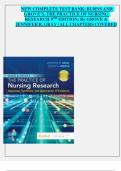 Updated for 2025/2026, this test bank includes multiple-choice questions, research appraisal items, application-based questions, and detailed answer keys covering quantitative, qualitative, and mixed-methods nursing research.