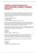 STRESS & ADAPTATION NCLEX QUESTIONS AND CORRECT ANSWER GRADE A+