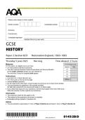 2025 AQA GCSE HISTORY Paper 2 Section B/D: Restoration England, 1660–1685 Combined Question Paper with Final Marking Scheme