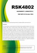 RSK4802 Assignment 2 (COMPLETE ANSWERS) 2024 - DUE 28 October 2024