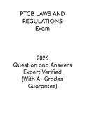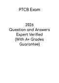 This PTCB Practice Test Questions and Answers guide is designed to help students prepare effectively for the Pharmacy Technician Certification Board exam. The document includes realistic practice questions with detailed answers, covering medication safety, pharmacy law, calculations, and drug classifications. Ideal for aspiring pharmacy technicians, this guide reinforces understanding, highlights areas for improvement, and builds confidence, ensuring students are well-prepared to succeed on the ...