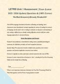 This LETRS (Language Essentials for Teachers of Reading and Spelling) Unit 1 Assessment covers foundational concepts regarding the science of reading, the structure of language, and the brain's role in reading. It evaluates an educator's understanding of why reading is difficult, how to identify reading difficulties, and the shift from whole-language approaches to str...