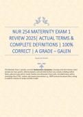 NUR 254 MATERNITY EXAM 1 REVIEW 2025| ACTUAL TERMS & COMPLETE DEFINITIONS | 100% CORRECT | A GRADE – GALEN