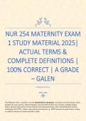 NUR 254 MATERNITY EXAM 1 STUDY MATERIAL 2025| ACTUAL TERMS & COMPLETE DEFINITIONS | 100% CORRECT | A GRADE – GALEN
