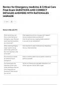 Review for Emergency medicine & Critical Care Final Exam QUESTIONS AND CORRECT DETAILED ANSWERS WITH RATIONALES |AGRADE