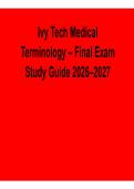 Studydiary On this page, you find all documents, package deals, and flashcards offered by seller studydiary. 623 Documents 0 Flashcards 6 Package deal Community 2 Followers 0 Following 348 Reviews received 276 42 16 9 5 2 weeks ago • studyallguide Test Bank For Early Childhood Development, A Multicultural Perspective 8th Edition, Jeffrey Trawick 2 weeks ago • studyallguide Test Bank for 4th Edition by Laura E. Berk 2 weeks ago • studyallguide Test Bank For Davis Advantage for Maternal-Child Nursing Care 3rd Edition By Meredith Scannell 2 weeks ago • studyallguide TEST BANK for Community Public Health Nursing 8TH Edition by Mary A. Nies, Melanie McEwen 3 weeks ago • valeroerika AHA PALS Exam 2025/ 2026 | Real Questions and Verified Answers with Solution + Show more reviews 632 items Everything Documents Flashcards Package deal Best sold Newest Rating Introduction to Design and Analysis of Algorithms – Questions & Answers 2026 (0) $15.99 0x sold Master Design and Analysis of Algorithms with this 2026 updated questions and answers study guide. Designed for computer science students, this resource reinforces algorithm design principles, problem-solving techniques, and analytical strategies. Ideal for self-assessment, revision, and exam readiness, it provides structured, high-quality materials to confidently tackle questions and excel in computer science coursework. i x Exam (elaborations) • 102 pages • by studydiary • uploaded 2026 Quick View i x Introduction to Design and Analysis of Algorithms • Introduction to Design and Analysis of Algorithms Introduction to Political Science – Key Concepts and Research Methods Study Guide & Test Bank 2026 (0) $15.99 0x sold Master Introduction to Political Science with this 2026 updated study guide and test bank covering key concepts and research methods. Designed for students, this resource reinforces foundational political science theories, research designs, and analytical frameworks. Ideal for self-assessment, revision, and exam readiness, it provides structured, high-quality materials to confidently tackle questions and excel academically. i x Exam (elaborations) • 10 pages • by studydiary • uploaded 2026 Quick View i x Introduction to Political Science • Introduction to Political Science Introduction to Programming, Algorithms & Problem Solving – Computer Science Study Guide 2026–2027 (0) $15.99 0x sold Master Introduction to Programming, Algorithms, and Problem Solving with this 2026–2027 updated study guide for computer science students. This resource reinforces foundational programming concepts, algorithm design, and problem-solving strategies. Ideal for self-assessment, revision, and exam readiness, it provides structured, high-quality materials to confidently understand, practice, and excel in computer science coursework and assessments. i x Exam (elaborations) • 7 pages • by studydiary • uploaded 2026 Quick View i x Introduction to Programming • Introduction to Programming Introduction to Psychological Assessment – Types, Tools, and Applications Study Guide 2026 (0) $15.99 0x sold Master Introduction to Psychological Assessment with this 2026 updated study guide covering types, tools, and practical applications. Designed for psychology students and professionals, this resource reinforces key assessment methods, test selection, and interpretation strategies. Ideal for self-assessment, exam preparation, and practical application, it provides structured, high-quality materials to confidently understand, review, and apply psychological assessment techniques. i x Exam (elaborations) • 23 pages • by studydiary • uploaded 2026 Quick View i x Introduction to Psychological Assessment Types Too • Introduction to Psychological Assessment Types Too Ivy Tech Medical Terminology – Final Exam Study Guide 2026–2027 (0) $15.99 0x sold Prepare effectively for Ivy Tech Medical Terminology final exams with this 2026–2027 updated study guide. Designed for nursing and healthcare students, this resource reinforces essential medical terms, prefixes, suffixes, root words, and practical applications. Ideal for self-assessment, revision, and exam readiness, it provides structured, high-quality materials to confidently review, practice, and excel in final exams. i x Exam (elaborations) • 25 pages • by studydiary • uploaded 2026 Quick View i x Ivy Tech Medical Terminology • Ivy Tech Medical Terminology Key Concepts in Political Science and Research Methods – Questions and Answers 2026–2027 (0) $15.99 0x sold Master key concepts in Political Science and Research Methods with this 2026–2027 updated resource featuring complete questions and verified answers. Designed for students and researchers, this guide reinforces foundational political science theories, research designs, and analytical methods. Ideal for self-assessment, revision, and exam preparation, it provides structured, high-quality materials to confidently tackle questions and excel academically. i x Exam (elaborations) • 9 pages • by studydiary • uploaded 2026 Quick View i x Political Science and Research Methods • Political Science and Research Methods Key Political Science Research Methods & Theories – Study Guide 2026 (0) $15.99 0x sold Master Political Science Research Methods and Theories with this 2026 updated study guide. Designed for students and researchers, this resource provides clear explanations of key research methodologies, theoretical frameworks, and analytical techniques. Ideal for self-assessment, revision, and exam preparation, it offers structured, high-quality materials to confidently understand, review, and apply political science research concepts and theories. i x Exam (elaborations) • 24 pages • by studydiary • uploaded 2026 Quick View i x Key Political Science Research Methods • Key Political Science Research Methods Key Political Science Research Methods and Concepts – Questions & Answers 202