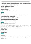 This NHA CBCS Exam Version 3 includes over 120 multiple-choice questions with verified answers and explanations. It reviews major topics in healthcare billing and coding such as HIPAA and compliance, claims processing, insurance types (Medicare, Medicaid, TRICARE, HMO, PPO), CPT modifiers, ICD-10-CM, revenue cycle management, and reimbursement procedures. The file also covers regulatory laws (OIG, Stark Law), claim adjudication, and anatomy terminology relevant to coding. Ideal for students and ...