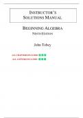 This Instructor’s Solutions Manual is designed to accompany Beginning Algebra (9th Edition) by John Tobey. It contains comprehensive, step-by-step solutions to all exercises across every chapter, including chapter reviews and tests. This manual is a valuable resource for instructors and students seeking detailed explanations to reinforce foundational algebra skills.