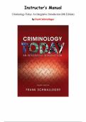 - Criminology Today: An Integrative Introduction 8th Edition – Frank Schmalleger | Instructor’s Manual Chapters 1–16 | Complete & Verified | Latest Update • Exam (elaborations)