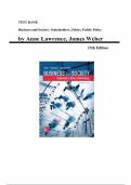 Business and Society: Stakeholders, Ethics, and Public Policy 15th Edition – Anne Lawrence & James Weber | Test Bank Chapters 1–19 | Complete Exam Questions & Verified Answers | Latest Update