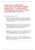 This document provides the complete Walden University NRNP 6645 (Psychotherapy with Multiple Modalities) Midterm Exam, featuring two different versions with a total of 200 verified questions and correct answers. Updated for Week 6, 2025, the content covers key areas such as cognitive-behavioral therapy (CBT), psychodynamic therapy, group and family therapy, motivational interviewing, cultural considerations in psychotherapy, and evidence-based treatment planning. Each question is paired with a c...