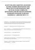 SCOTT PILATES WRITTEN ANATOMY EXAM AND PRACTICE EXAM NEWEST 2025 ACTUAL EXAM 1 COMPLETE (TERMS AND DEFINATION) 200 QUESTIONS AND CORRECT DETAILED ANSWERS (VERIFIED ANSWERS) |ALREADY GRADED A+||BRAND NEW!!