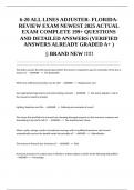 6-20 ALL LINES ADJUSTER- FLORIDA- REVIEW EXAM NEWEST 2025 ACTUAL EXAM COMPLETE 199+ QUESTIONS AND DETAILED ANSWERS (VERIFIED ANSWERS ALREADY GRADED A+ )