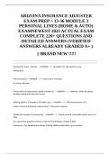 ARIZONA INSURANCE ADJUSTER EXAM PREP > 13-36 MODULE 3 PERSONAL LINES (HOME & AUTO) EXAMNEWEST 2025 ACTUAL EXAM COMPLETE 220+ QUESTIONS AND DETAILED ANSWERS (VERIFIED ANSWERS ALREADY GRADED A+ ) || BRAND NEW !!!!!