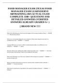 FOOD MANAGER EXAM (TEXAS FOOD MANAGER EXAM LEARN2SERVE 360TRAINING) 2025 ACTUAL EXAM COMPLETE 1100+ QUESTIONS AND DETAILED ANSWERS (VERIFIED ANSWERS ALREADY GRADED A+ )