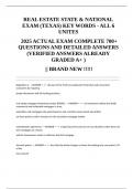 REAL ESTATE STATE & NATIONAL EXAM (TEXAS) KEY WORDS - ALL 6 UNITES 2025 ACTUAL EXAM COMPLETE 700+ QUESTIONS AND DETAILED ANSWERS (VERIFIED ANSWERS ALREADY GRADED A+ )