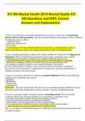 Test bank for ATI RN Mental Health 2019 Mental Health ATI 160 Questions and 100% Correct Answers and Explanations. Well organized, easy to understand and verifiable.