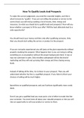 To make the correct judgement, you need the essential insights, and this is what it means by "qualify". If you are not selling the product or service to the correct lead, you will end up wasting a lot of money, time, energy and resources.