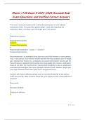 Prepare for Pharm 1140 Exam II 2025–2026 with accurate real exam questions and verified correct answers. This comprehensive Pharm 1140 exam prep resource supports students in mastering pharmacology concepts, medication classifications, mechanisms of action, side effects, and nursing considerations for confident exam performance.