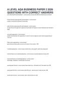 A LEVEL AQA BUSINESS PAPER 2 2026 QUESTIONS WITH CORRECT ANSWERS