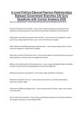 A Level Politics Edexcel-Pearson Relationships Between Government Branches (Uk Gov) Questions with Correct Answers 2026