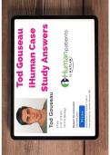 This document contains the complete iHuman case study answers for Tod Gouseau, including patient history analysis, physical examination findings, differential diagnosis, and final diagnosis. It outlines clinical reasoning steps, diagnostic interpretation, and appropriate treatment or management planning based on the presented scenario.