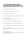 A - Level History Edexcel Russia Questions with Correct Answers 2026