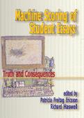 This Updated 2025–2026 Test Bank for Machine Scoring of Student Essays: Truth and Consequences is a specialized academic resource designed for courses in educational assessment, measurement, learning analytics, and applied artificial intelligence in education. The test bank focuses on the theoretical foundations, practical applications, and ethical implications of automated essay scoring systems used in modern educational settings. It includes carefully structured assessment questions that exa...