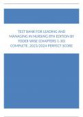 TEST BANK FOR LEADING AND MANAGING IN NURSING 8TH EDITION BY YODER WISE |(CHAPTERS 1-30) COMPLETE TEST BANK