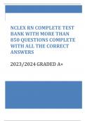 NCLEX RN COMPLETE TEST BANK WITH MORE THAN 850 2023 /2024 QUESTIONS AND ANSWERS