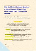 Stuviaread On this page, you find all documents, package deals, and flashcards offered by seller StuviaRead. 1295 Documents 0 Flashcards 95 Package deal Community 12 Followers 4 Following 1014 Reviews received 594 331 70 15 4 1 week ago • franklinagbor ATI Sensory Perception/ Exam Questions & Detailed Solutions. 6 months ago • blanch67 F Gas Exam/ Questions with 100% Correct Answers. Happy 6 months ago • jayjdds2021 MN Dental Jurisprudence Exam/ Questions with Correct Answers A+ Score Solutions. 6 months ago • alexmaxfield VA Contractors: VA Advanced (Class A) Actual Questions & Verified Answers. 7 months ago • bankoludaisi Foundations of Nursing Exam #1/ Actual Questions & verified Answers,2025. + Show more reviews 1393 items Everything Documents Flashcards Package deal Best sold Newest Rating Issa Final Exam | Complete Questions & Correct Detailed Answers |100% Correct) 2026 | 2027 Latest Update (Rated A) (0) $23.49 0x sold Issa Final Exam | Complete Questions & Correct Detailed Answers |100% Correct) 2026 | 2027 Latest Update (Rated A)