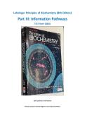 test bank aligned with Part III (“Information Pathways”) of Lehninger Principles of Biochemistry (8th Edition) by Nelson and Cox. It includes 225 exam-style questions (multiple choice, short answer, true/false, fill-in-the-blank, and case-based) covering key topics such as DNA/RNA structure, replication, transcription, translation, gene regulation, epigenetics, DNA repair, recombinant DNA, and genomics. Each section is paired with clear answers and explanations, accompanied by original color...