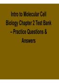 Master foundational cell biology concepts with the Intro to Molecular Cell Biology Chapter 2 Test Bank 2025/ 2026 with solution. This focused resource includes chapter-based practice questions and verified answers covering cell structure, organelles, molecular interactions, signaling pathways, and key cellular processes. Ideal for students in biology, biochemistry, and health sciences, it reinforces understanding of molecular and cellular mechanisms, strengthens analytical skills, and improves p...