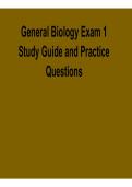Prepare effectively with the General Biology Exam 1 Study Guide and Practice Questions 2025/ 2026 with solution. This focused resource includes chapter-based practice questions and verified answers covering cell structure, molecular biology, genetics, evolution, and basic biological principles. Ideal for students in biology, health sciences, and related programs, it reinforces core concepts, strengthens analytical and critical thinking skills, and improves performance on quizzes, midterms, and e...