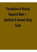 Strengthen your understanding of nursing research with the Foundations of Nursing Research Week 1 – Questions & Answers Study Guide 2025/ 2026 with solution. This focused resource includes chapter-based practice questions and verified answers covering the basics of nursing research, research design, evidence-based practice, ethical considerations, and critical appraisal. Ideal for nursing students preparing for quizzes, assignments, or early-course assessments, it reinforces research principle...