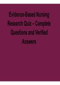 Prepare effectively with the Evidence-Based Nursing Research Quiz 2025/ 2026 with solution. This focused resource includes complete practice questions and verified answers covering research methods, evidence-based practice principles, data analysis, ethical considerations, and critical appraisal in nursing. Ideal for nursing students preparing for quizzes, unit tests, or final exams, it reinforces research knowledge, strengthens analytical skills, and supports success in nursing research and evi...