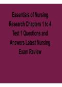 Essentials of Nursing Research Chapters 1 to 4 Test 1 2025/ 2026 Questions and Answers Latest Nursing Exam Review with solution