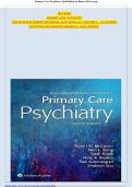 This document includes the full test bank for Primary Care Psychiatry, 2nd Edition by Robert McCarron and Glen Xiong. It covers all chapters from 1 to 26, featuring multiple-choice, true/false, and case-based questions with verified correct answers. The content is graded A+ and fully updated to match the latest edition, making it an essential resource for medical and nursing students, clinicians, and educators preparing for exams or clinical assessments.