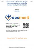 Test Bank For The Human Body in Health and Illness 7th Edition By Barbara Herlihy 1265, X , 1231, X 1. Introduction to the Human Body 2. Basic Chemistry 3. Cells 4. Cell Metabolism 5. Microbiology Basics 6. Tissues and Membranes 7. Integumentary System and Body Temperature 8. Skeletal System 9. Muscular System 10. Nervous System: Nervous Tissue and Brain 11. Nervous System: Spinal Cord and Peripheral Nerves 12. Autonomic Nervous System 13. Sensory System 14. Endocrine System 15. Blood 16. Anatom...